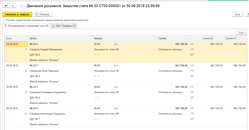 Выручка от продажи отражается документом «Закрытие счета 86.33»