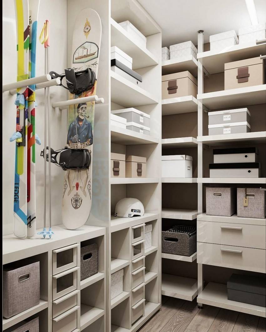 Обладателям отдельной кладовой комнаты в квартире намного проще, поскольку у них уже есть готовое место для размещения любых вещей. Если такую локацию вы будете использовать только для хранения, то ее нужно разделить на зоны: