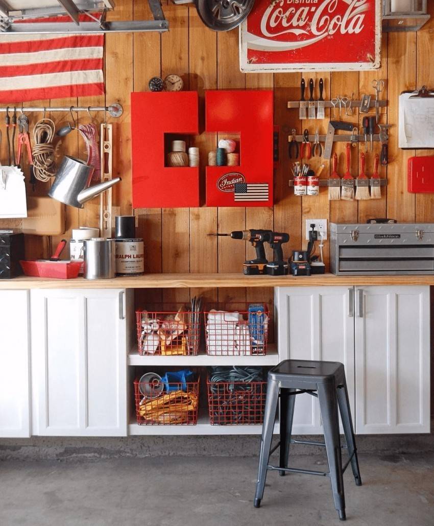 - Если вы оформляете мини-мастерскую или локацию для хранения заготовок, стены рекомендуется обшить вагонкой, а пол покрыть ламинатом.