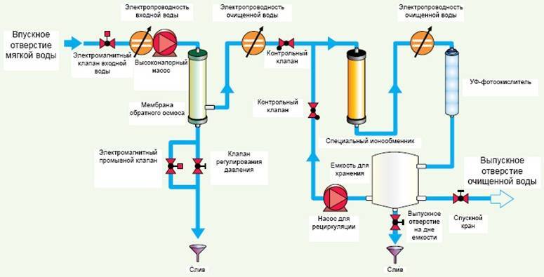 Тонкая очистка с применением обратного осмоса стоит дорого. Для размещение крупного комплекта оборудования требуется много места. Сложность конструкции затрудняет обслуживание, уменьшает надежность.