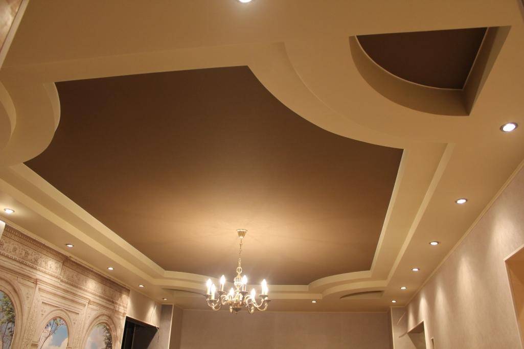 При многоуровневой конструкции часто применяются комбинации из различных цветов, тем самым придавая помещению изюминку, оригинальность.