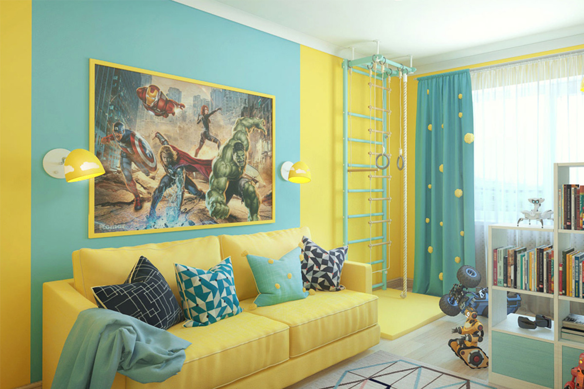 Это может быть диван-кровать с превосходной встроенной системой хранения. Дополнить гарнитур можно с помощью пуфиков, полок и шкафов для одежды.