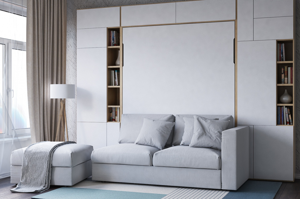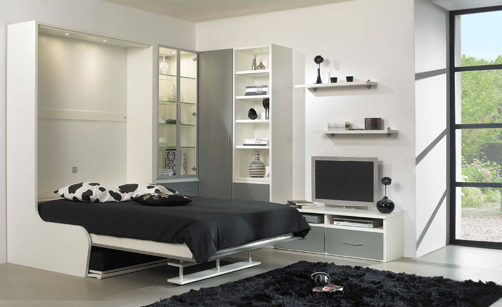 Для однокомнатной квартиры, где на учете каждый квадратный сантиметр полезной площади, модифицирующаяся кровать-шкаф трансформер, становится незаменимой палочкой-выручалочкой. Но такая модель в современном исполнении не ограничивается утилитарной задачей прятать в недрах кровать на дневное время суток.