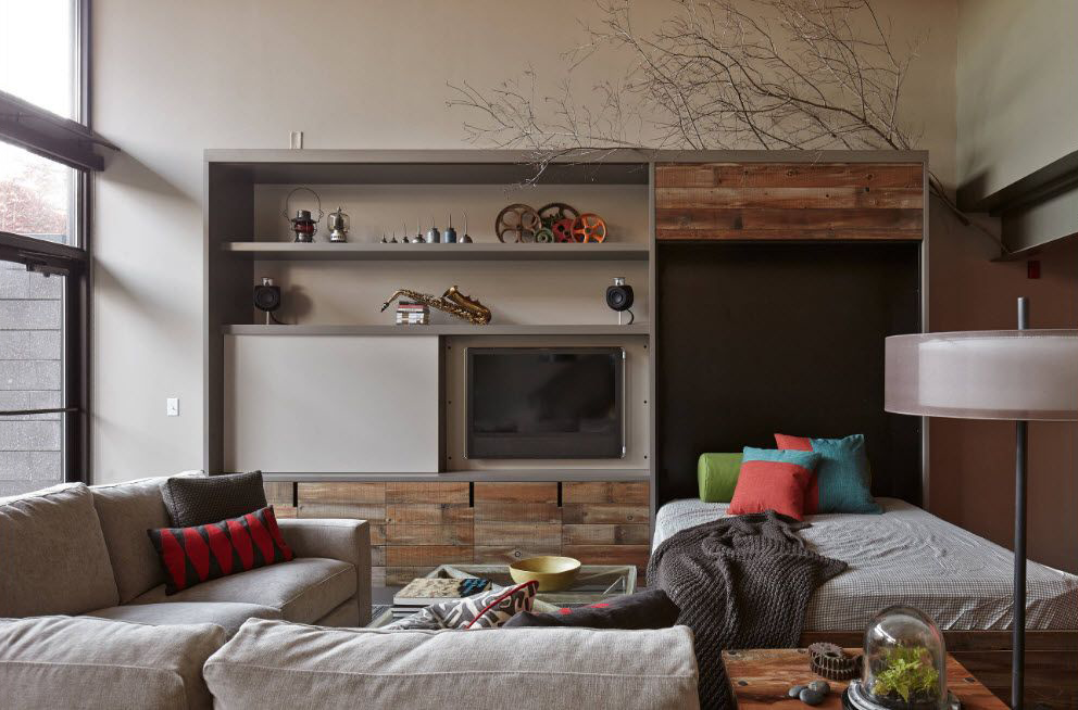 Современное оформление интерьеров превосходно сочетается с мебелью трансформером