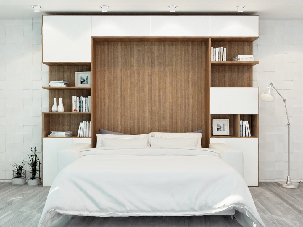 Кровать, встроенная в шкаф-купе для комнаты в скандинавском стиле