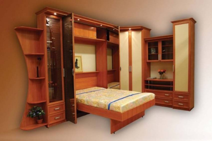 - функциональность. В дневное время они превращаются в шкаф-купе с дополнительными мебельными предметами, а в ночное – преобразуются в просторное спальное место;