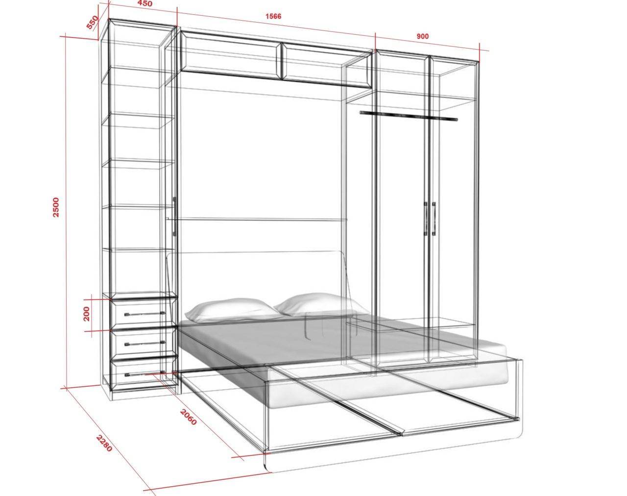 - глубина должна равняться глубине шкафа, а ширина — ширине матраса;