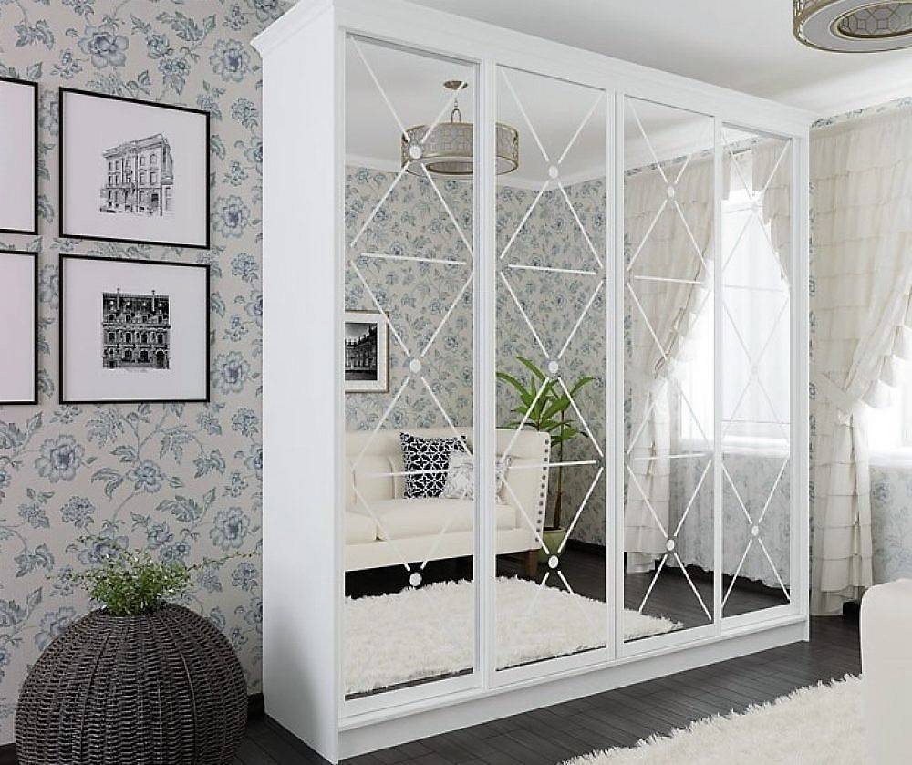 Кроме того, фасад шкафа-купе – это настоящий простор для дополнительного декора. Зеркальные и глянцевые поверхности будут отражать свет и тем самым увеличат пространство. На зеркало можно нанести прекрасные пескоструйные рисунки и фотопечать. Доступна также долговечная лазерная гравировка. А еще можно облагородить шкаф, установив дополнительную подсветку или вмонтировав в него телевизор.
