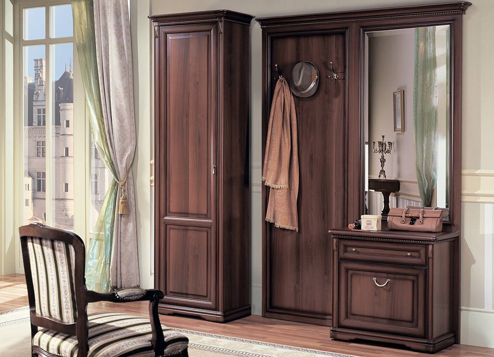 Материал также выбирается с оглядкой на общий стиль. Например, для прованса желательно подобрать светлое дерево, а для ретро подойдет шкаф из МДФ с фотопечатью на дверях. При оформлении небольшой комнаты в стиле лофт можно добавить угловой пенал темных оттенков, а на его дверь прикрепить зеркало с каким-нибудь орнаментом.