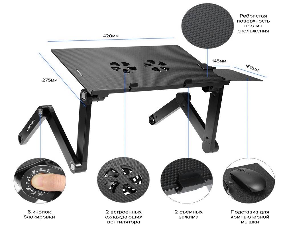 - Подушками. Призваны отводить тепло, которое выделяет ноутбук. Кроме того, предотвращают запотевание рук, позволяют работать в максимально комфортных условиях.