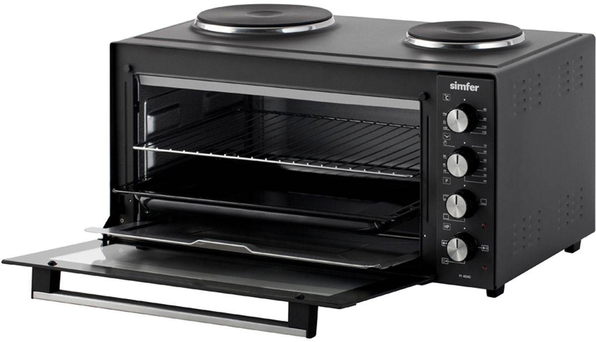 Мини-вариантом жарочных шкафов можно назвать ростеры с камерой. Часть моделей оснащается одной или двумя конфорками. Компактность и небольшой вес позволяют брать ростеры с собой на дачу, в гараж. В быту распространены однокамерные устройства. В некоторых моделях предусмотрены нагреватель гриля, конвектор, лампы для освещения. В комплекте с ростером могут поставляться решетки, противни, вертела, поддоны для сбора жира и брошюры с рецептами.