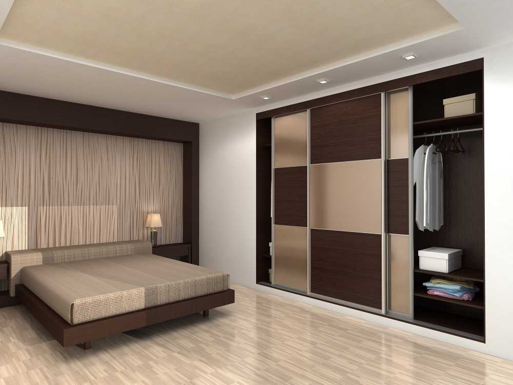 Шкаф может встраиваться до потолка, или же на более низком уровне с дополнительным сегментом для крыши. Двери делаются раздвижными в стиле купе, применяются зеркальные или стеклянные покрытия, чтобы исключить визуальную громоздкость.