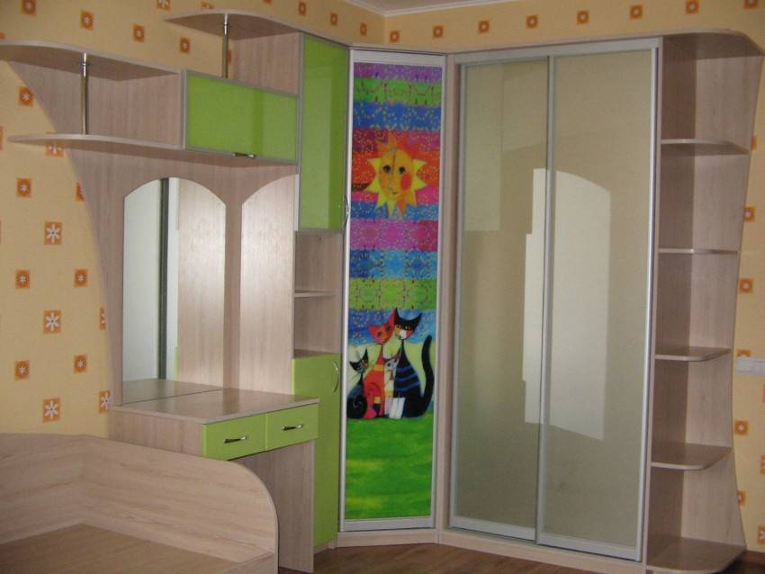 Встраиваемые в угол шкафы используются в проектировании спален и детских, загороженный угол оборудуется внутри полками, между которыми можно оставить свободное пространство, превратив шкаф в мини гардеробную.