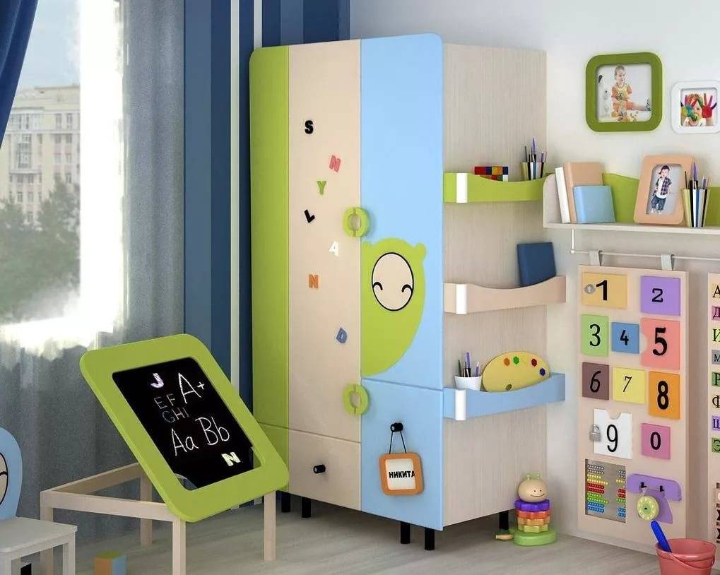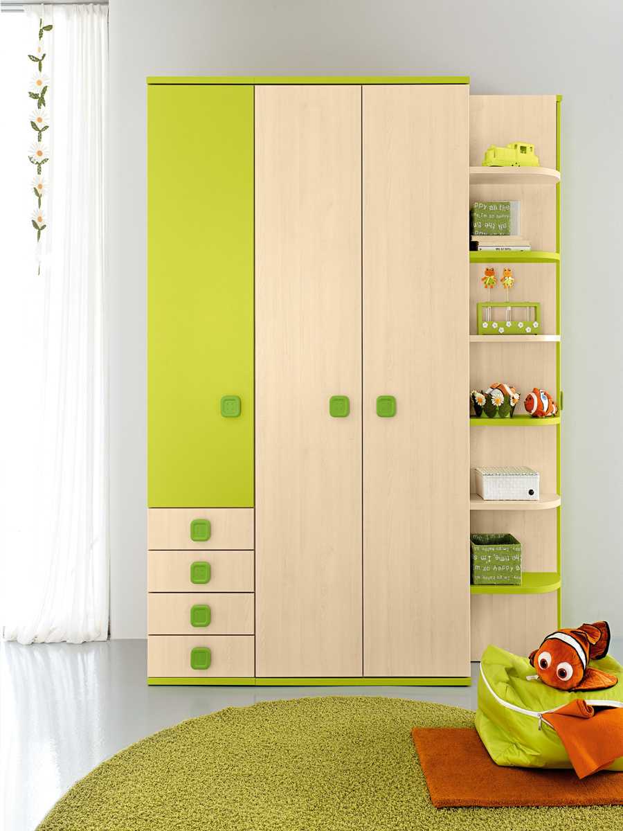 При выборе шкафа для мальчика также можно отойти от традиционного синего и рисунков с машинами, подобрав оригинальную мебель. Например, в детской хорошо смотрятся зеленые и коричневые оттенки;