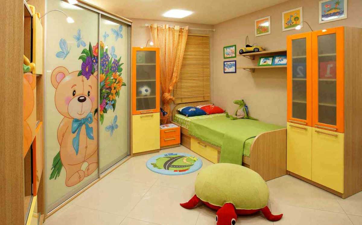 Фасадная часть шкафа должна гармонично сочетаться с основным интерьером комнаты. Темную цветовую гамму использовать неприемлемо. Рекомендуется оформлять детскую светлой гаммой, также можно использовать яркие акценты. Что касается раздвижных дверей изделия, на них нанесите фотопечать – это модно, стильно и оригинально. На изображении может быть все что угодно! Например, любимые герои из сказок или мультфильмов, животные, или просто красивые изображения.