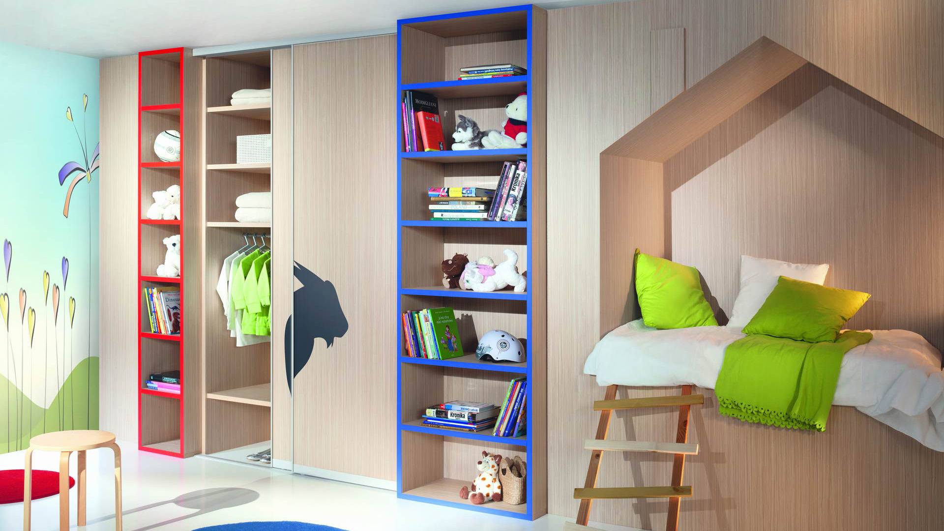 Шкаф стенка. Это обычная корпусная конструкция, которая может иметь распашные или купейные двери, антресоли, а также встроенную кровать для каждого из детей. Здесь уместны разноцветные ящички и дверки, отделка соответствующим декором.