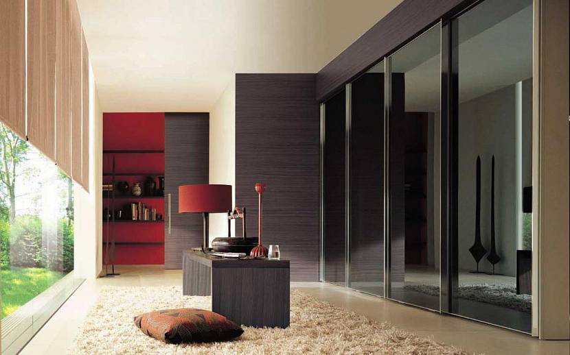 Шкафы-купе могут быть встроенными или иметь собственный корпус. Корпусную мебель можно разместить в углу или вдоль стены. Встроенная модель «утапливается» в специальную нишу. Внешне встроенный шкаф смотрится в одной плоскости со стеной, не имеет своего потолка и боковых стен. Такой вариант подходит для просторных помещений.