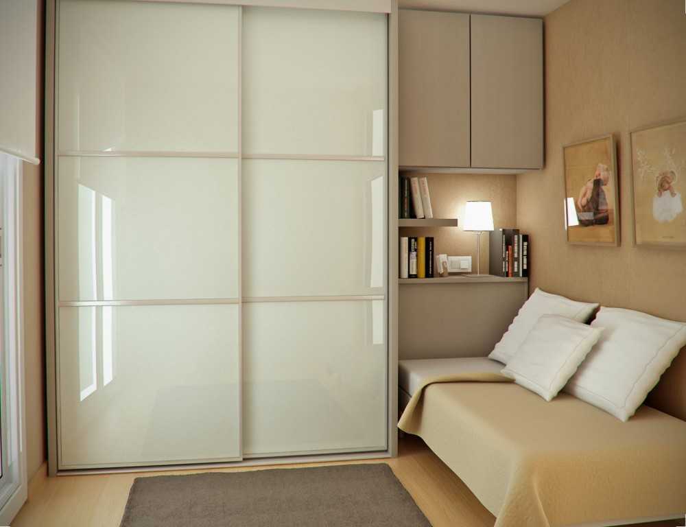 В комнате мало места, поэтому мебель не должна быть громоздкой. Компактные модели с отражающими фасадами визуально расширяют пространство. Красиво смотрятся поверхности из бамбука, ротанга светлых тонов. Шкаф-купе в коридоре из шпона под дерево часто дополняет вставка из зеркала.