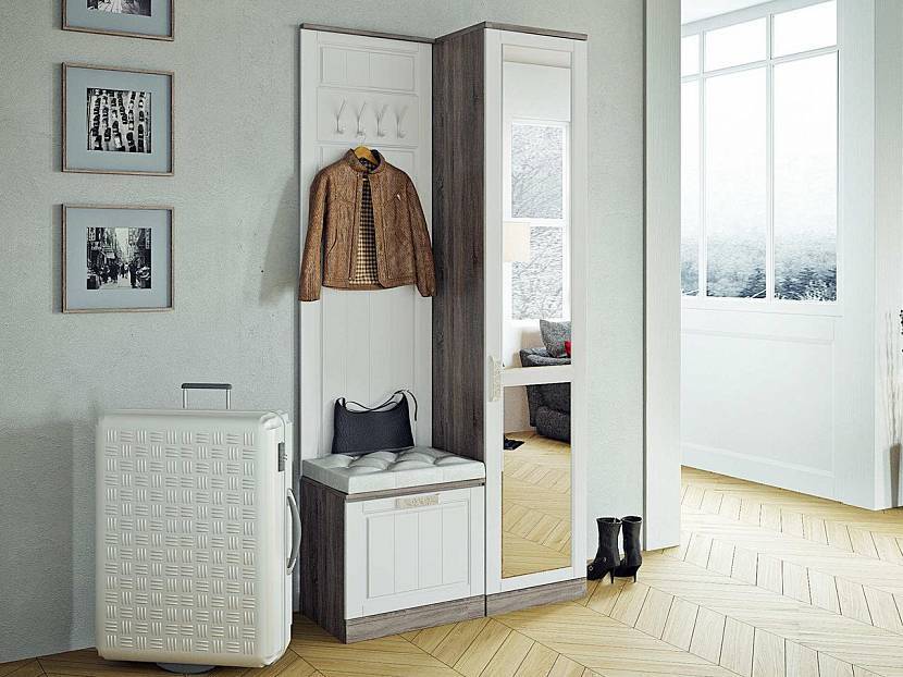 Всё. Такой формат мебели впишется в дизайн даже очень маленькой прихожей, и при этом имеет максимальную функциональность.
