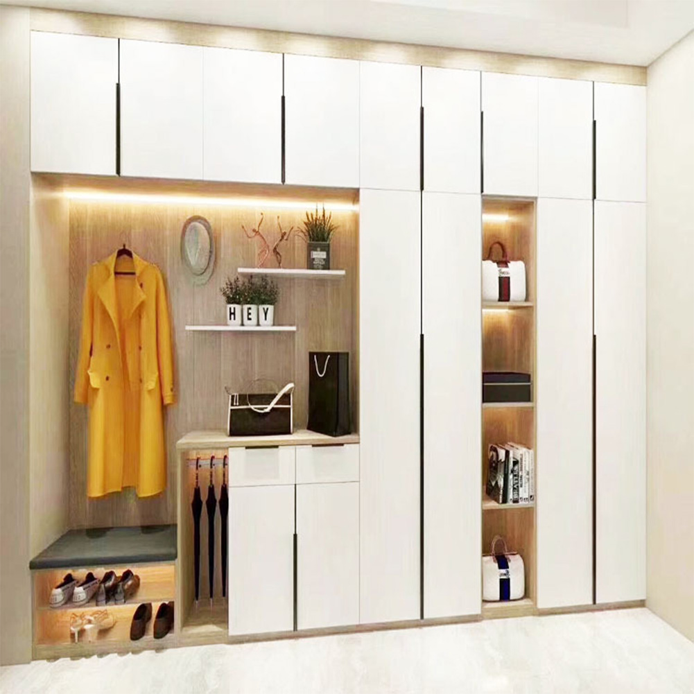 На самом деле они есть, но скрыты. Производители используют стильные и удобные профильные ручки из металлического Gola-профиля, который врезают в каркас шкафов.