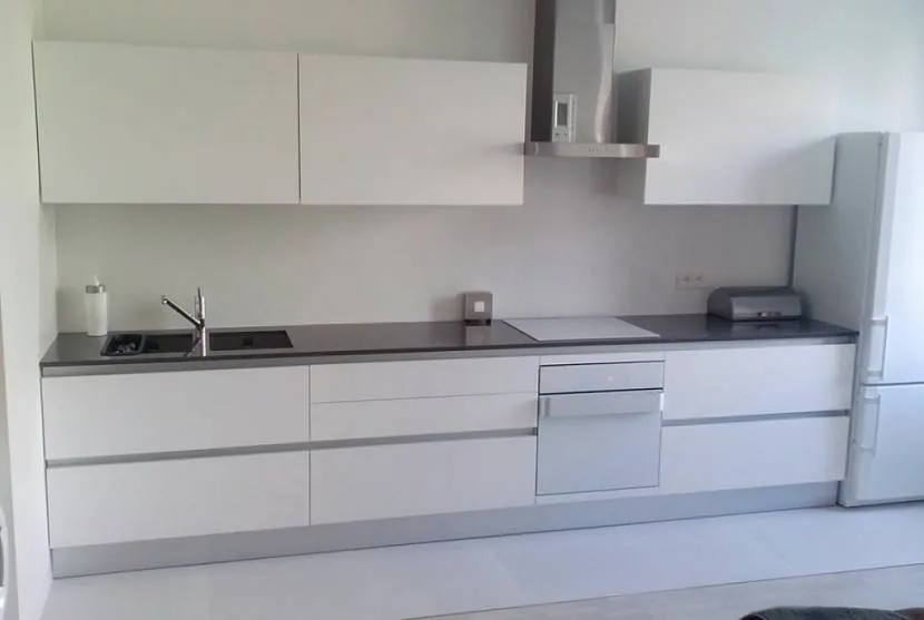 Основное преимущество – отсутствие вертикальных швов между соседними фасадами. За счет этого кухня смотрится аккуратнее. Минус в том, что при открывании нужно тянуть за фасад, а это не всегда удобно и практично. Помимо этого, профили «съедают» полезное пространство в ящиках.