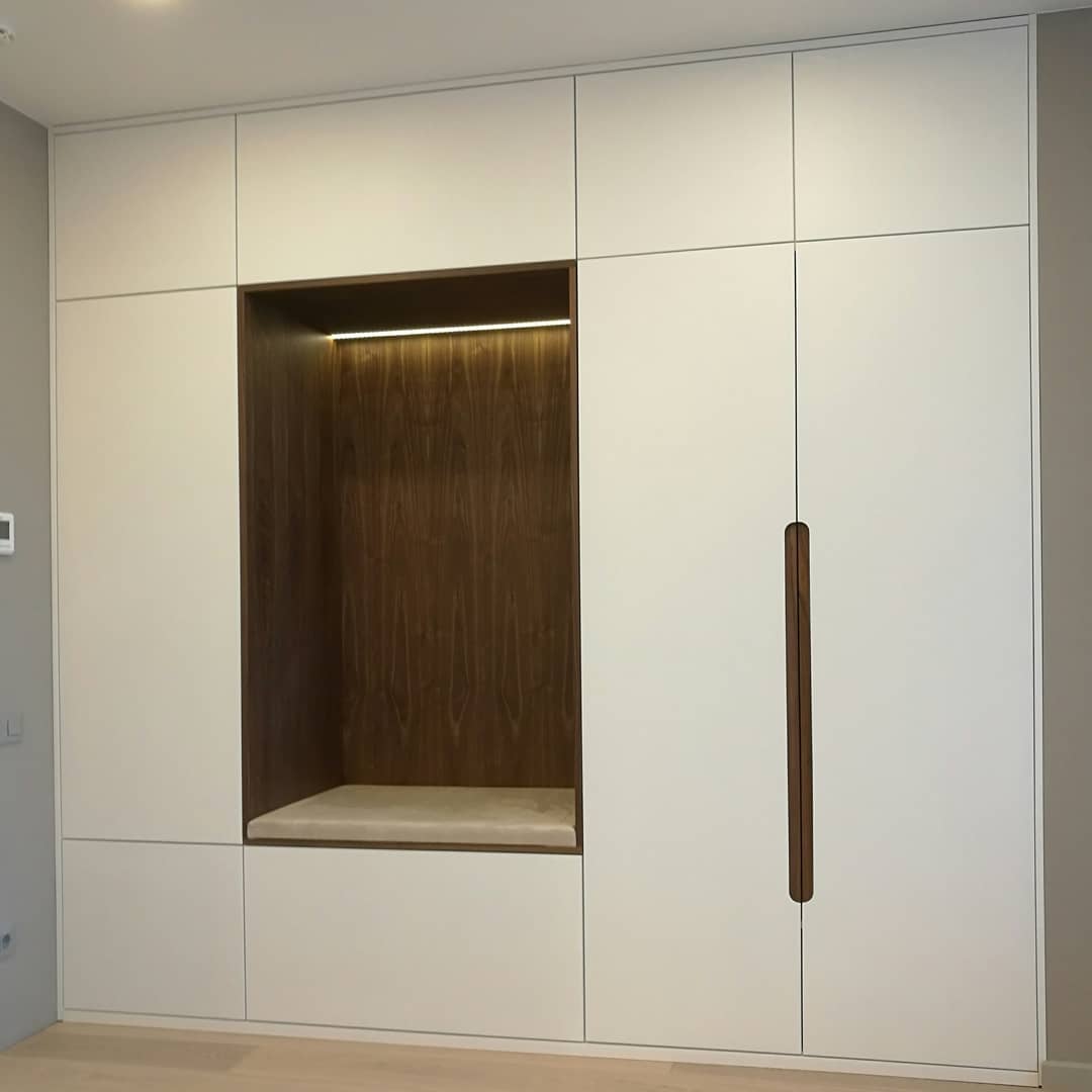 Потребность в ручках исчезла, и появился новый стиль минимализм, который визуально увеличивает пространство. Особенно это актуально для шкафов во всю стену. Ряд непрерывных фасадов без ручек высотой до потолка смотрится так, как будто это и не мебель вовсе.