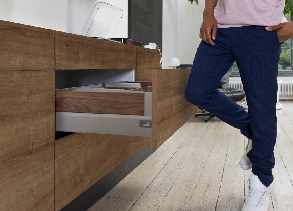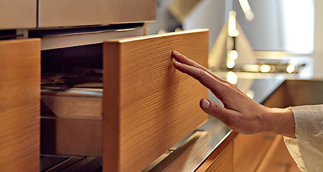 Чтобы открыть подъемники с Servo-Drive для Aventos, достаточно легкого прикосновения к фасаду. Даже большие и тяжелые фасады поднимаются так, словно силы тяжести не существует.