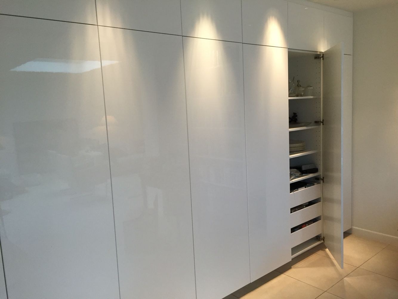 Современные кухни без ручек до потолка премиум класса
