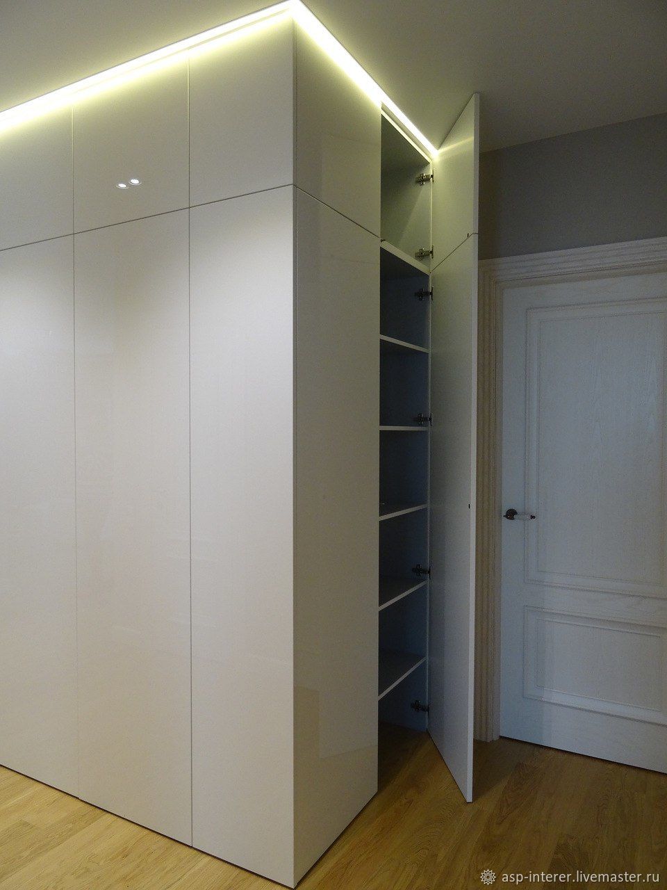 Скрытые элементы позволят чувствовать себя немного волшебниками, когда шкаф с распашными дверцами открывается, словно сам по себе.