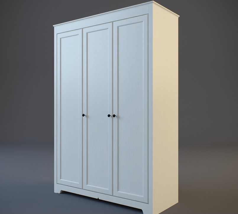 - Лексвик. Трехстворчатый гардероб на ножках с рамочным фасадом и карнизом в деревенском стиле;