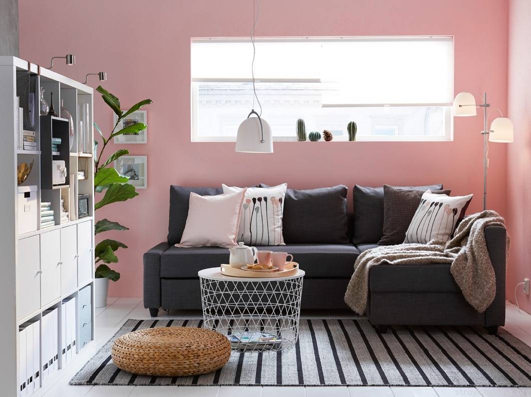 В дизайне маленькой гостиной икеа предпочтение отдают небольшим настенным полкам — ЭКЕТ, ЛАКК, БЕРГСХУЛЬТ можно прикрепить где угодно. Они компактны, при этом отчасти заменяют вместительные шкафы или стеллажи.