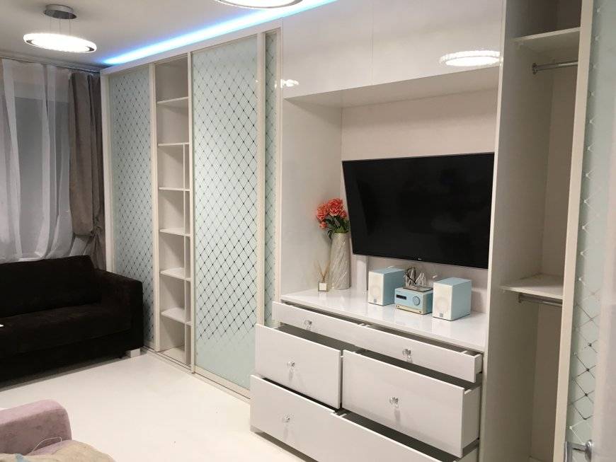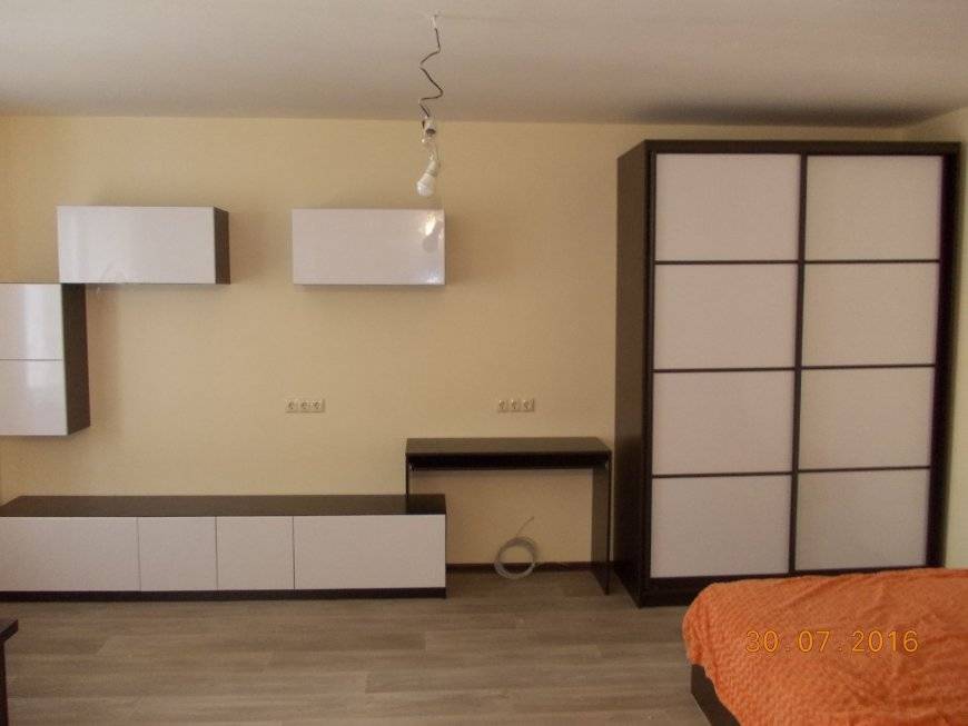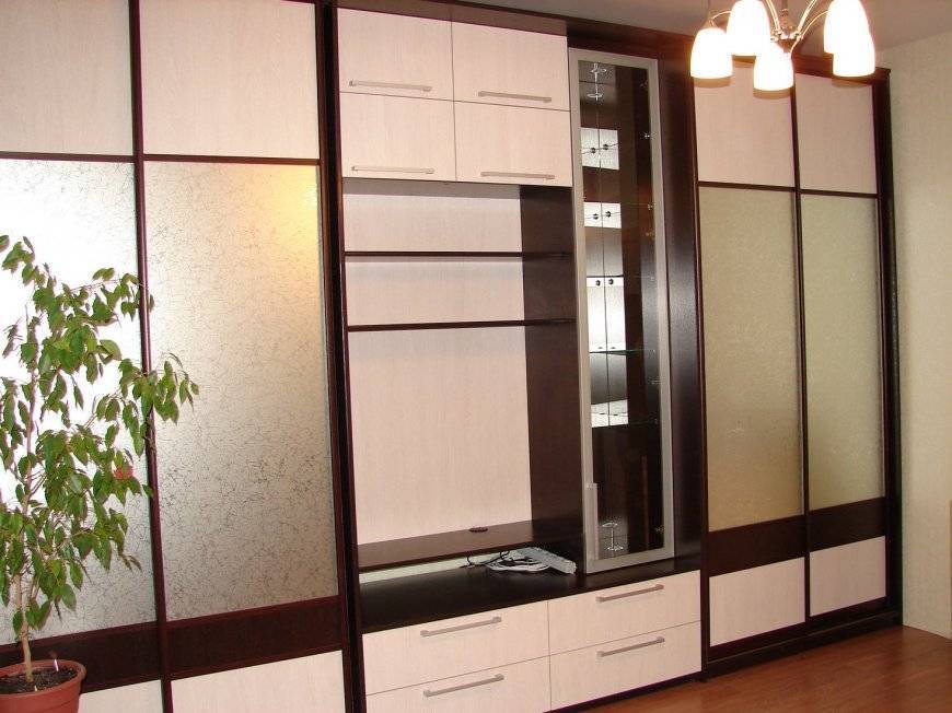 Шкаф-купе, размещенный вдоль стены, в главной комнате дома станет настоящим спасением для маленького помещения. Преимуществ у мебельной конструкции много, но есть и несколько недостатков. Так, например, раздвижная система из-за постоянной работы очень быстро изнашивается. Но, и заменить ее можно достаточно быстро, обратившись к мастеру мебельщику.