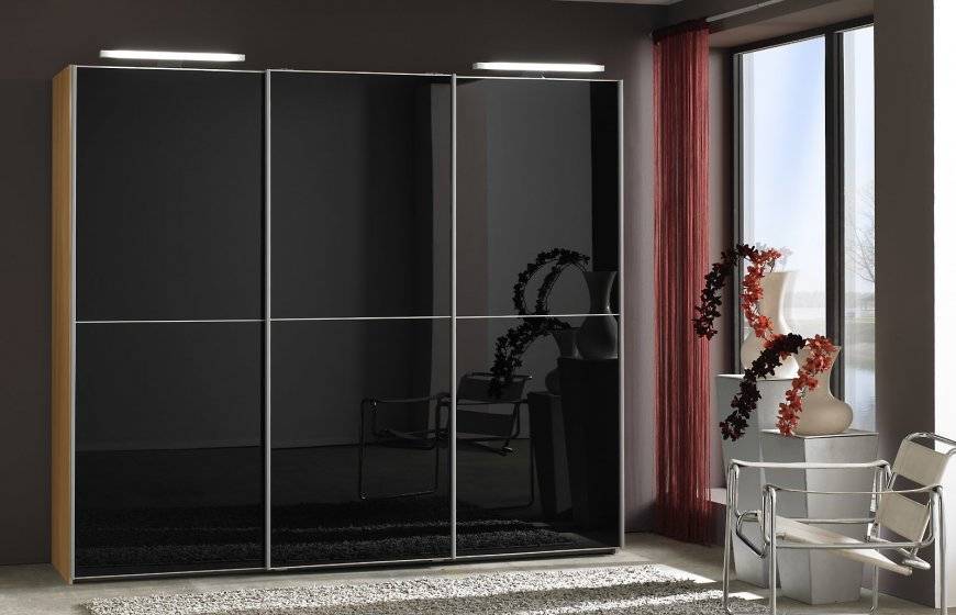 Красивым шкаф можно сделать и без рисунка, прекрасные зеркальные и глянцевые фасады смотрятся не менее величественно. А за счет хорошей подсветки интерьер только выиграет – комната зрительно увеличится в размерах и будет более светлой.