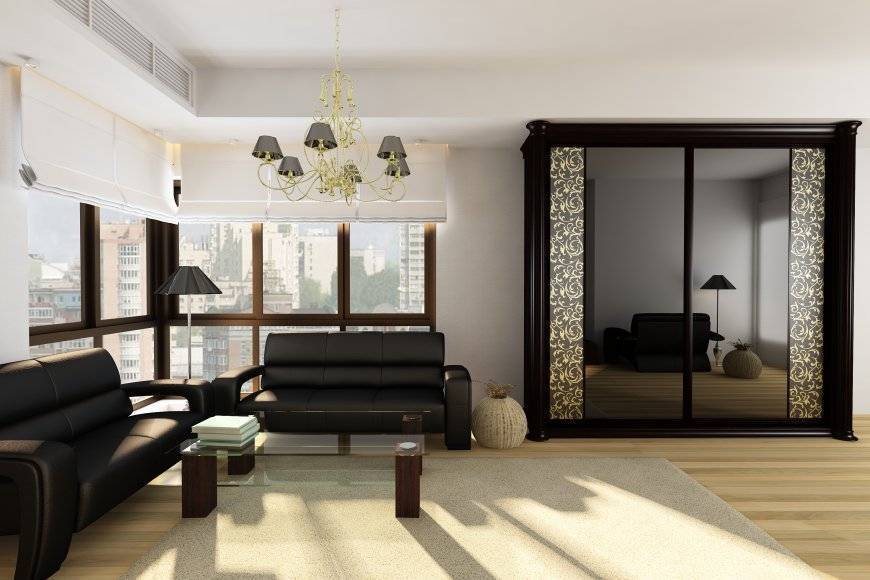 Формировать интерьер надо правильно. Шкаф-купе в интерьере зала – это необычное решение, так как гостиная обычно не предназначается для хранения вещей. Но для квартир студий и для хрущевок – это вполне актуальное решение. Ведь от того как мы формируем интерьер, зависит удобство и комфорт в последующем. По правилам размещенный шкаф-купе поможет сэкономить драгоценные сантиметры, без ущерба для комнаты. Все дело во внутреннем наполнении.