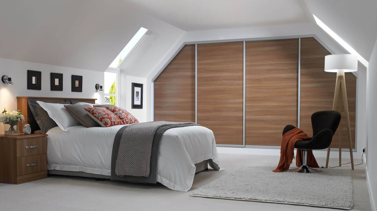 Виды фасадов дверей для шкафов на мансарду