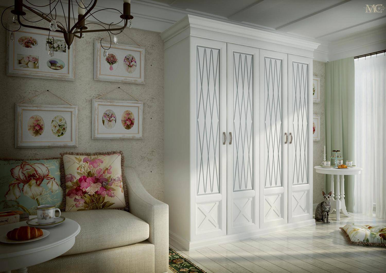 Более всего подходит романтика Прованса для спальни. Легкость, нежность, спокойные оттенки. Здесь можно выбрать небольшой шкаф-купе и обязательно совместить его по стилю с другими предметами в комнате. Особенно мило будет смотреться небольшой туалетный столик, а практичности придаст вместительный комод. Вся мебель должна быть светлой и сочетаться между собой отделкой.