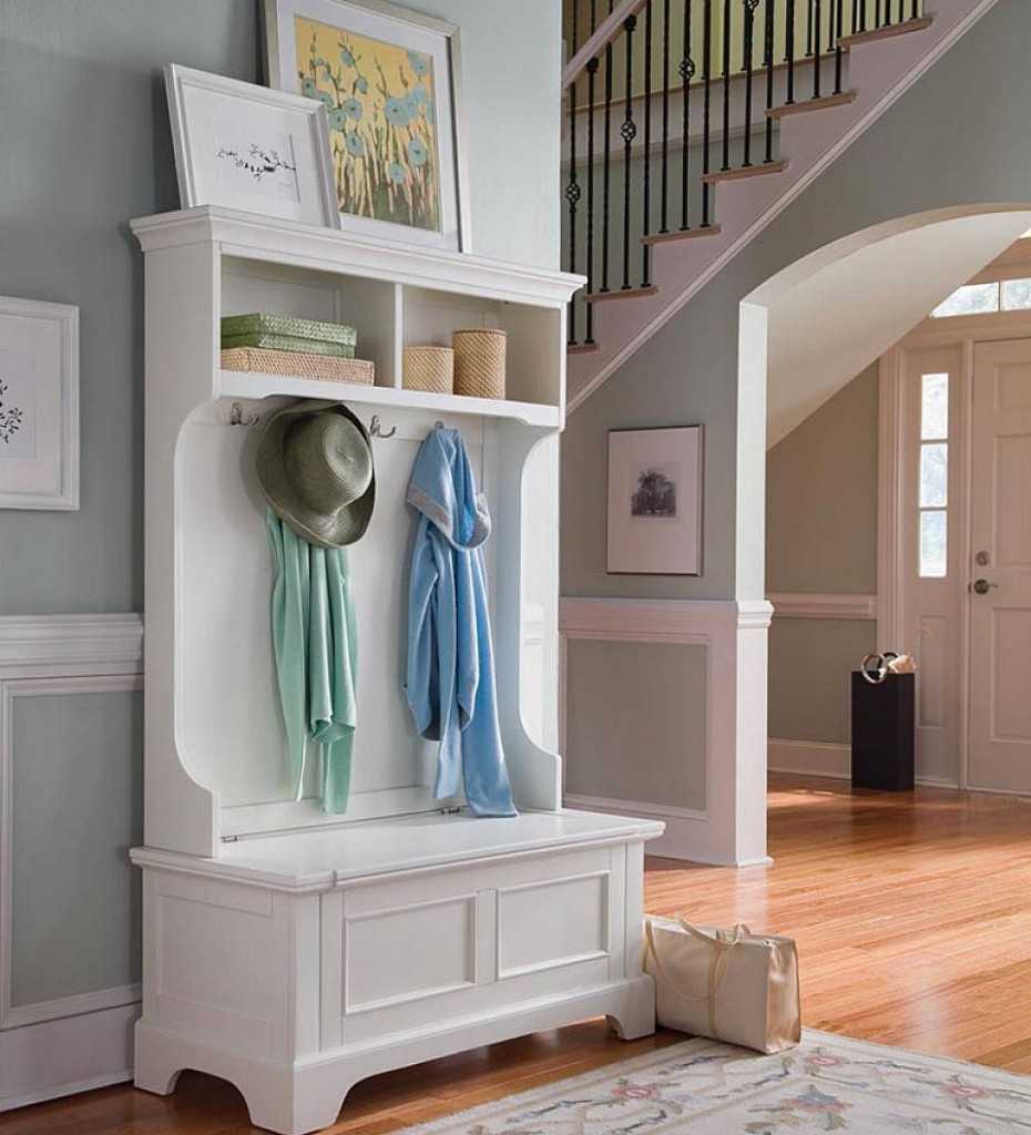 - Многофункциональные скамьи со встроенными ящиками и полкой для хранения обуви и аксессуаров.