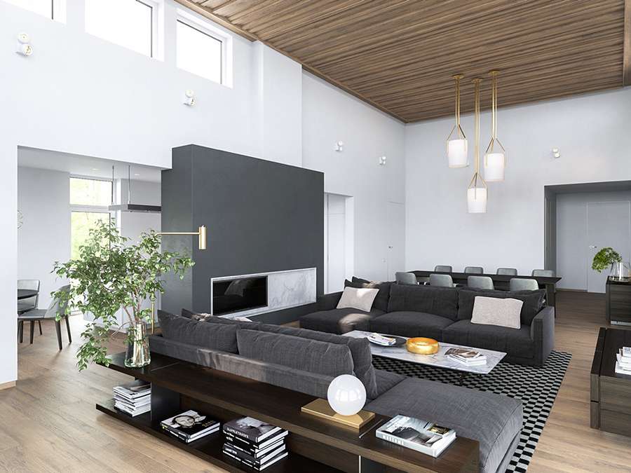 Скандинавский стиль в интерьере квартиры – в центре комнаты обязательно расположен камин. Вокруг или по бокам множество окон и обязательно один или несколько диванов. Их основной функцией является создание атмосферы полного расслабления, поэтому диваны, как правило, мягкие и удобные. Чаще всего они имеют светлые, серые и тонкие цвета.