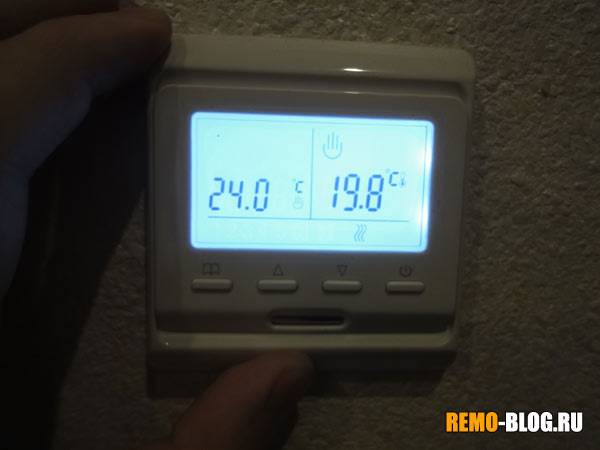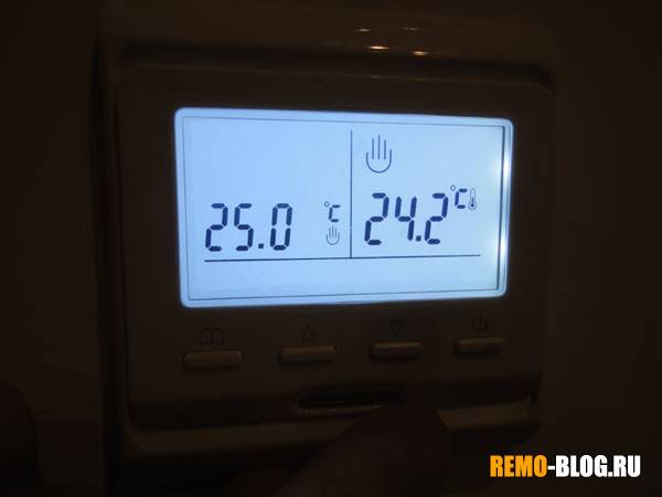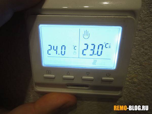 У меня установлен терморегулятор для теплого пола с ЖК дисплеем, поэтому я могу отслеживать точные включения и выключения.
