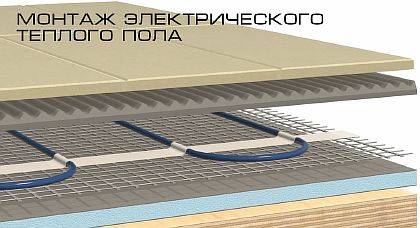 - Теплый пол под плитку — часто делается на старое основание. Сначала укладывается кабель с определённым шагом, чем он меньше, тем лучше. Нагреватель заливается плиточным клеем, после затвердевания монтируется плитка. Такой способ обеспечивает хорошую теплоотдачу.