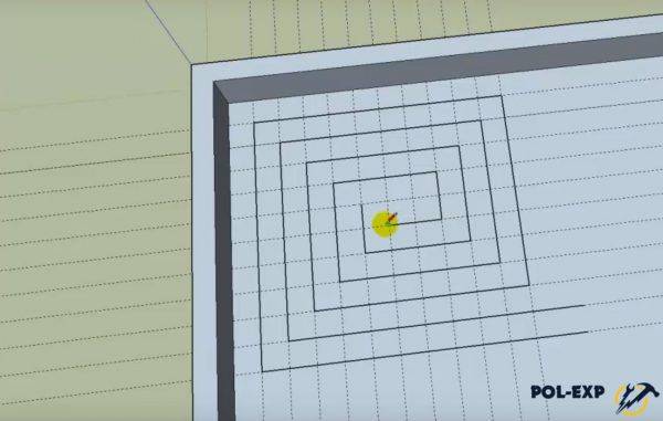 - Крепление труб. Прежде чем крепить их, сделайте отступ от всех стен 15-20 сантиметров. Уложить можно по разным схемам – спиралью или змейкой.