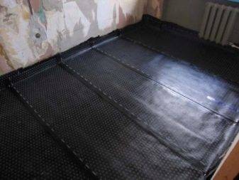 Гидроизоляция. Укладывается она разными способами, можно под утеплитель, а можно над ним. В случае укладки экструдированного пенополистирола значения не имеет, где будет располагаться гидроизоляция, поскольку он сам по себе не очень в ней нуждается. Единственное – она не даст лишней влаге проникнуть в плиту, где будут располагаться трубы с горячей водой. Рекомендуется располагать ее по деревянным балкам.