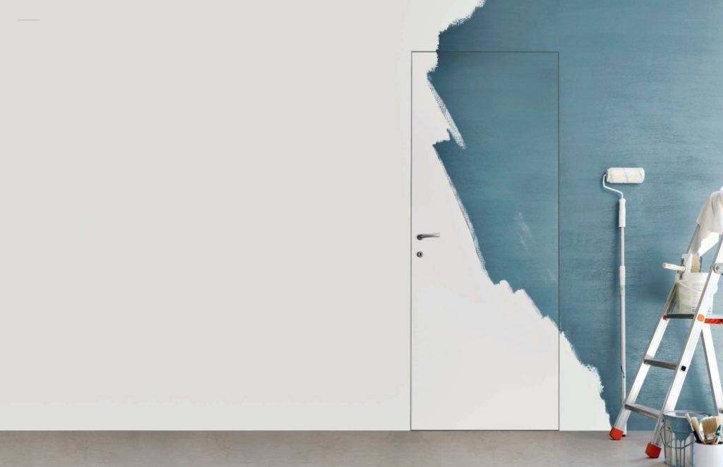 - Спрятать дверь можно, сделав ее покраску. Такой прием уместен, если для отделки стен также была использована краска.