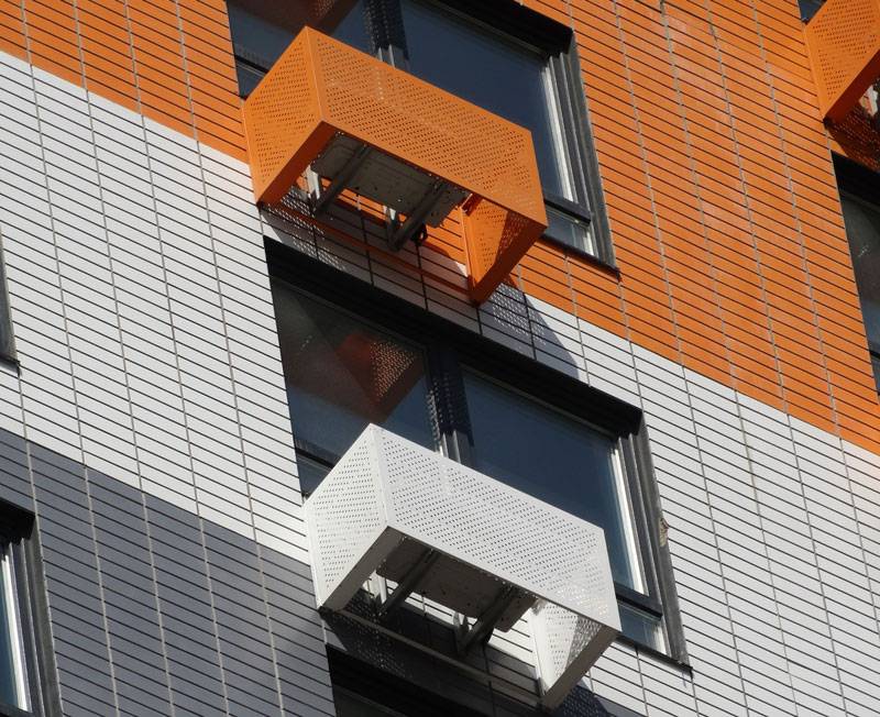 Корзины позволяют устанавливать внешние блоки на фасаде и при этом скрывать их, сохраняя внешний облик здания. Более того, конструкции способны дополнить архитектурную задумку.