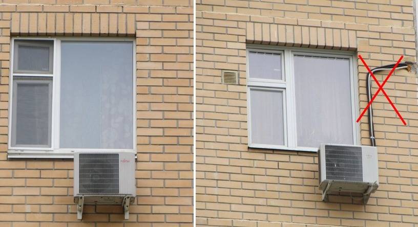 Не рекомендуется монтировать блок на застекленном балконе или лоджии, т.к. температура в замкнутом пространстве может сильно повыситься и повредить агрегат