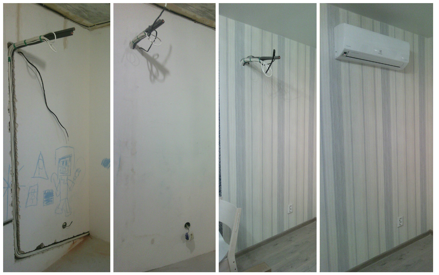 Итак, частично проблема того, как спрятать кондиционер, решена. Владельцы не увидят грубые короба для проводов, электророзетки и пакетники. Перед ними будет лишь аккуратная отделанная стена и сам кондиционер.