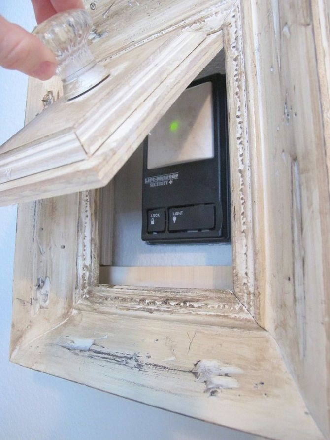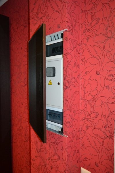 Требуется сделать продолжение шкафчика или стены и обклеить щиток обоями. Способ отличается легкостью и доступностью. Если оборудование не будет сильно выделяться на стене, тогда обои помогут скрыть его заметность. Полностью спрятать его не получится, но деталь будет не так бросаться в глаза.
