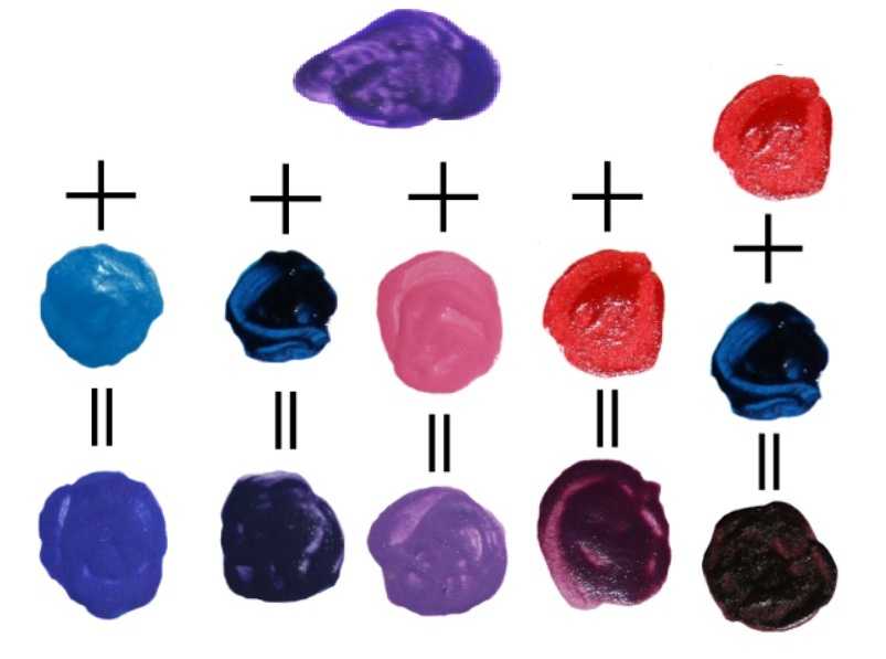 Как говорилось выше, фиолетовый мы получаем путем соединения синего и красного цветов. Вроде бы все понятно и должно быть просто, однако на практике результат не всегда получается ожидаемый. Это происходит от того, что мы используем разные оттенки красного и синего.