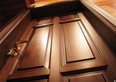 Двери в таком случае выбирают темные, обращают внимание на совпадение рисунка и структуры. Можно воспользоваться принципом контраста и подобрать белые или светлые двери, но такие интерьерные решения не всегда самые удачные