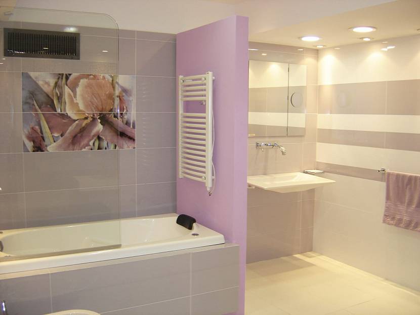 Сиреневая плитка для ванныИсточник rebathroom.ru